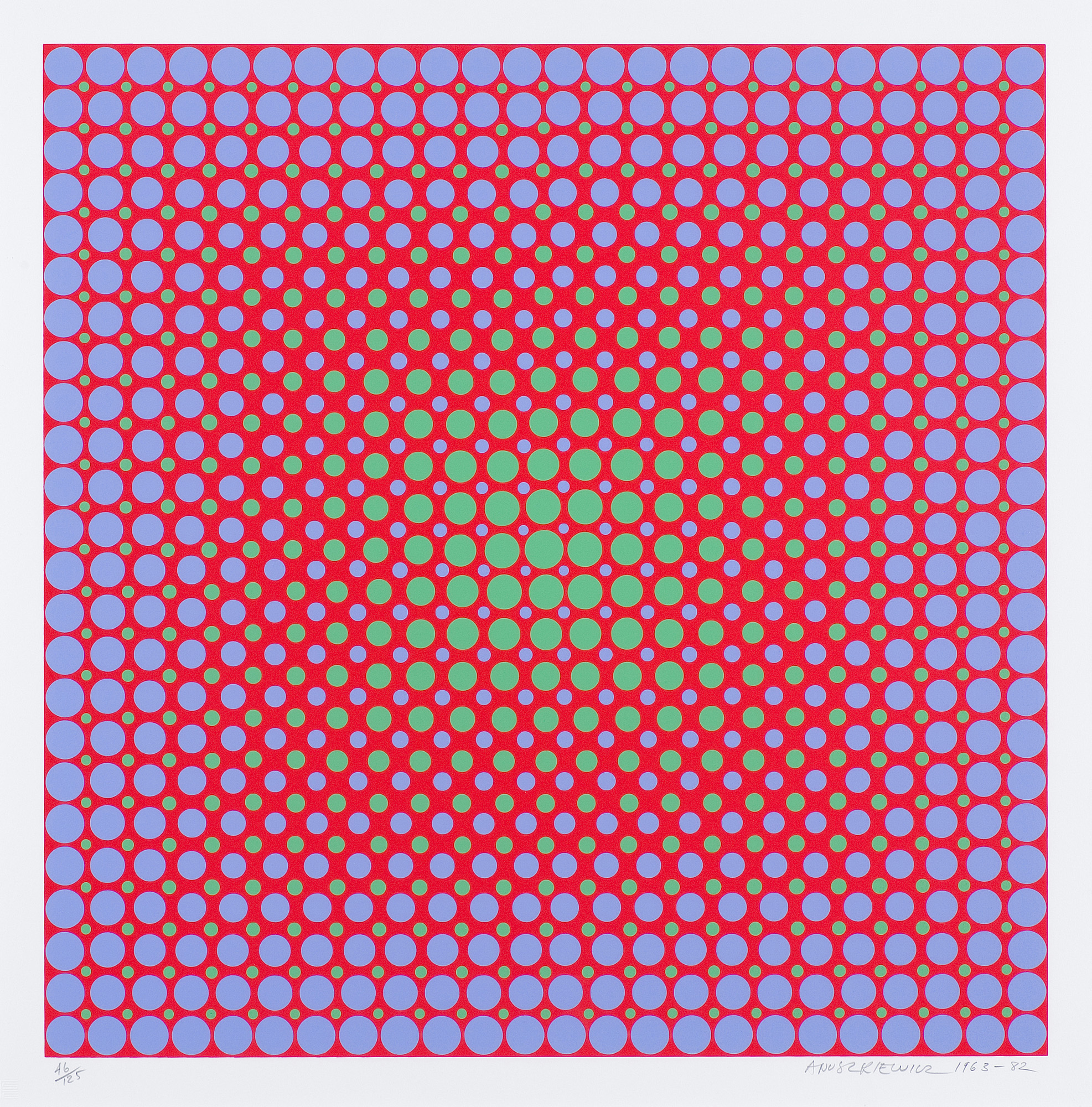signed in lead under the engraving left: 46/125, p.: ANUSZKIEWICZ 1963-82