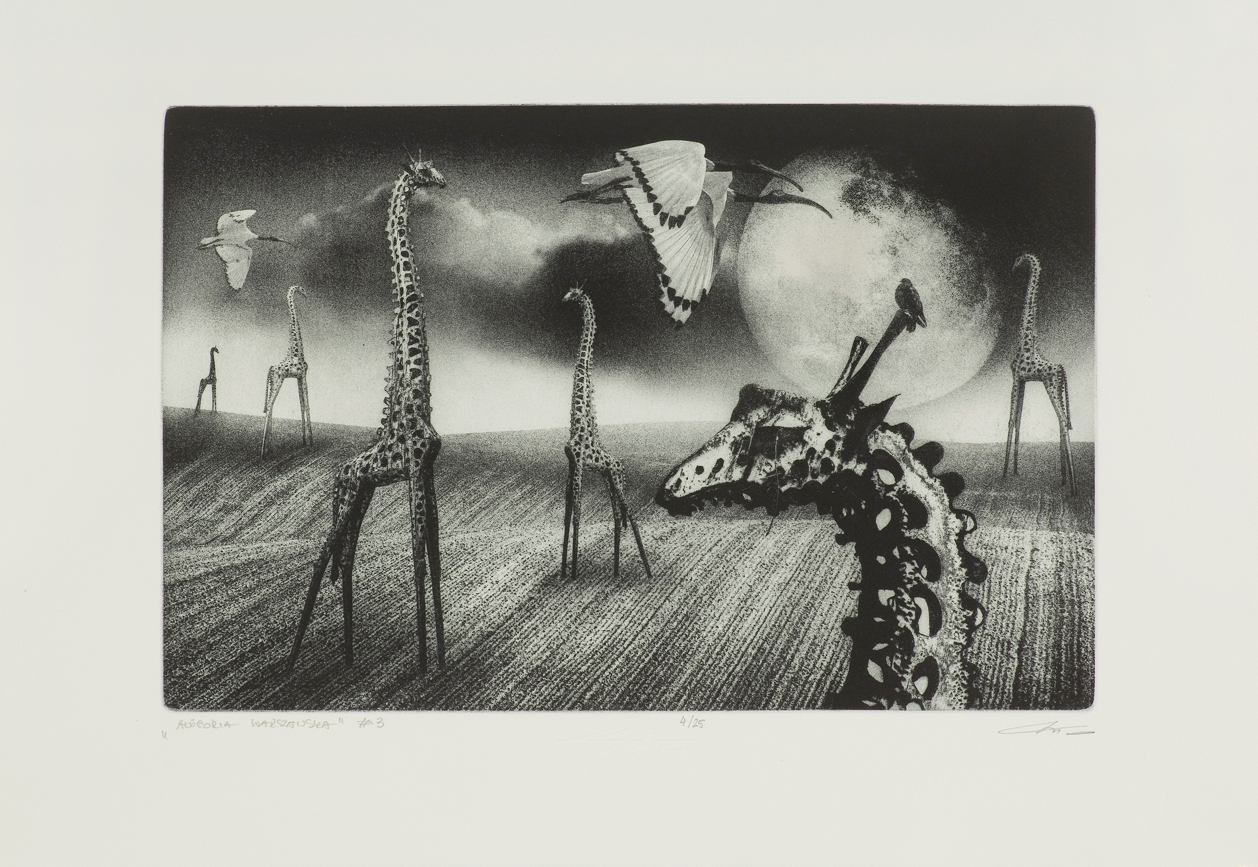 signed in lead under the left engraving: “ALLEGORIA WARSZAWSKA” # 3, dia.: 4/25, p.: artist’s signature, below dia. a dry seal (facsimile of the signature): AWiktor