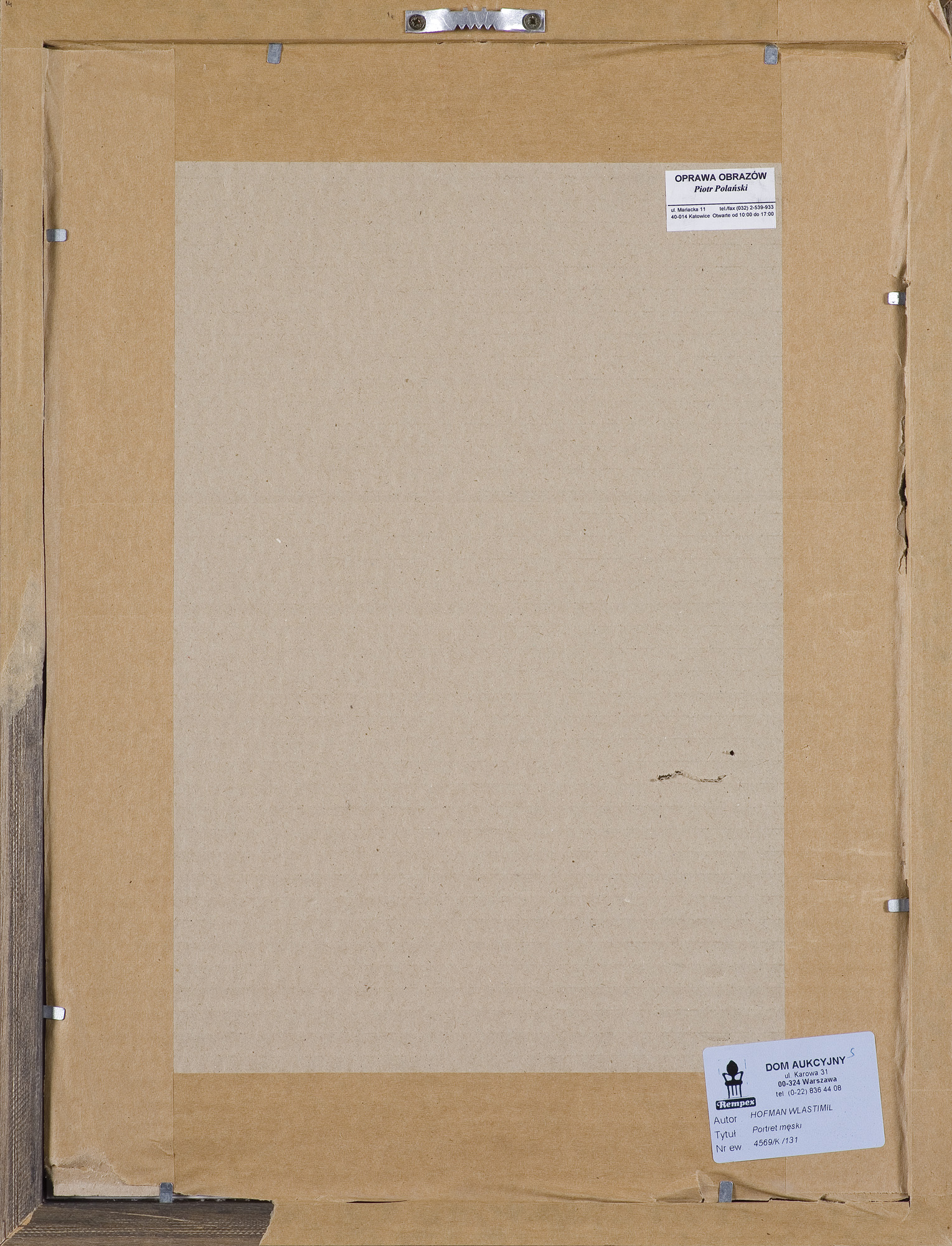 na odwrocie na tzw. „zaplecku” nalepka domu aukcyjnego w Krakowie.